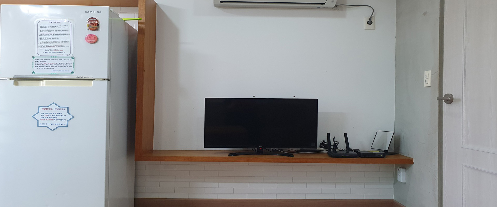 • 구비시설 : TV.에어컨,냉장고,전기밥솥,전기쿡탑,조리세트,헤어드라이기,전자렌지,커피포트,세면도구(수건,샴푸,비누)